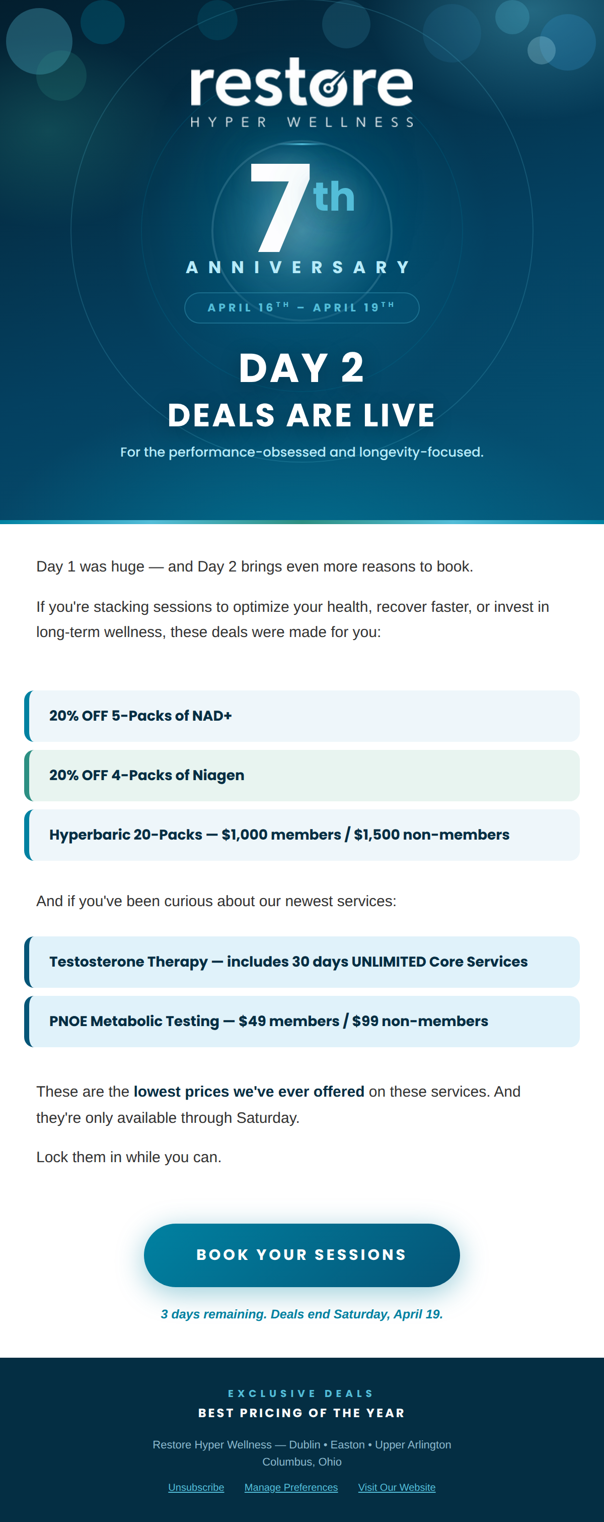 This email was sent to . If you do not wish to receive further emails from Restore Hyper Wellness - Columbus (4158 Easton Gateway Dr, Columbus, OH 43219), please unsubscribe here.