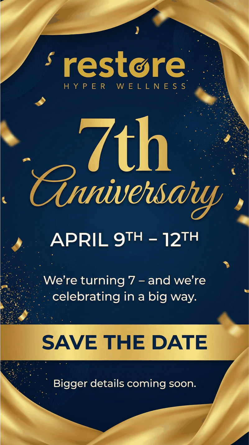 From April 9th–12th, we’re celebrating 7 years of Restore Hyper Wellness in Columbus with our biggest anniversary event yet.